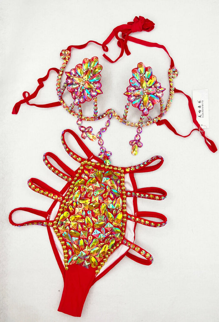 Illuminez la nuit et devenez le centre de toutes les attentions avec cet ensemble de scène spectaculaire. Conçue pour les performances les plus intenses, cette parure fusionne l'énergie du Samba Carnival et l'élégance du Belly Dancing. Chaque centimètre de cet ensemble est une explosion de reflets multidimensionnels, grâce à un sertissage dense de cristaux irisés qui captent la moindre lueur pour la transformer en un halo magnétique. Que ce soit pour enflammer la scène d'un festival, dominer le dancefloor d'un nightclub ou briller lors d'une rave, cet outfit "High Panties" est l'armure de lumière ultime pour les louves qui n'ont pas peur d'éblouir la meute.